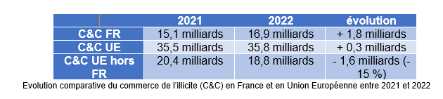 1. Le marché de l’illicite3 continue de croître dans l’UE en raison de la hausse constante en France.