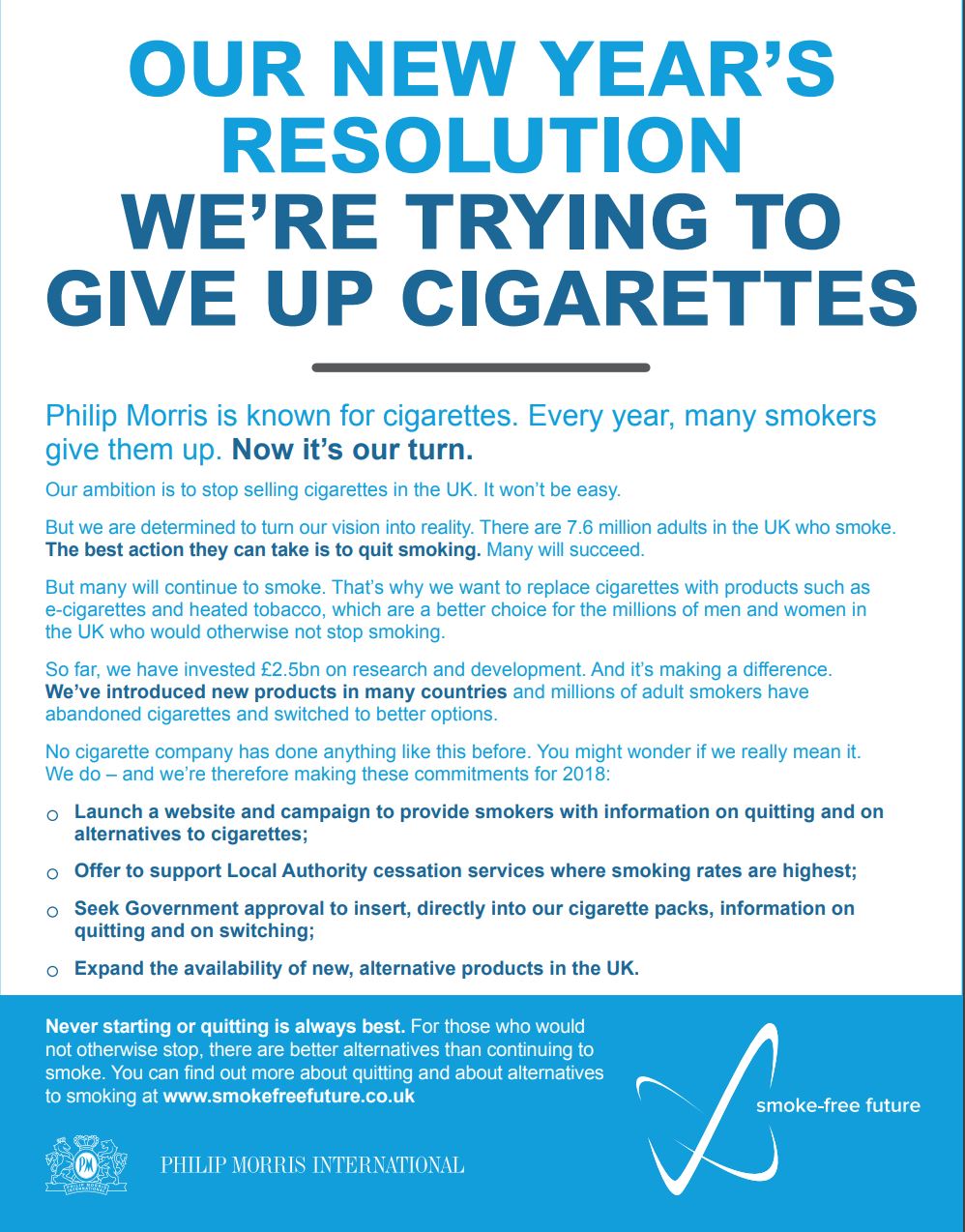 For more information about our vision of a smoke-free future, we invite you to read our Manifesto.